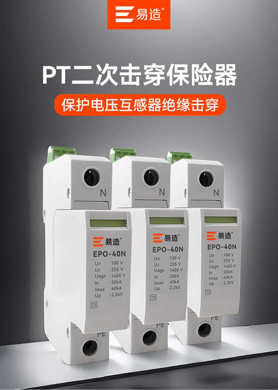 易造EPO-40N PT二次擊穿保險器應用于電力變配電站的PT電壓互感器柜二次側(cè),當過電壓出現(xiàn)時,擊穿保險會迅速導通,呈現(xiàn)低阻抗對地通路,保護PT柜內(nèi)電壓互感器和后端設(shè)備免受過電壓的侵害。