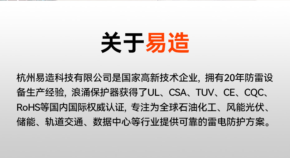 易造隔離式防雷箱、電磁脈沖防護箱、電源防雷箱、智能防雷箱被廣泛應用于通訊基站、數據機房、醫療設備、石油化工、鐵路系統、儲能電站等場景,易造防雷箱采用全模保護,可高效抵御直擊雷(10/350μs)、感應雷(8/20μs)及電磁脈沖輻射。